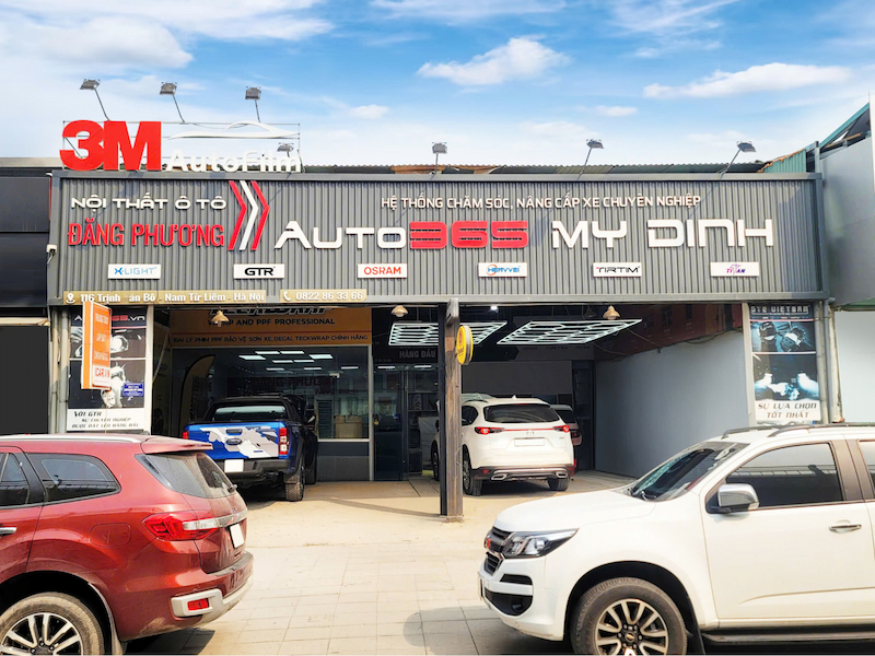 Auto365 là hệ thống chăm sóc xe có quy mô lớn. Tại Hà Nội, đơn vị cung cấp nhiều gói dán PPF nội thất và ngoại thất từ cơ bản đến cao cấp. Quy trình tiêu chuẩn, đội ngũ kỹ thuật đông đảo, thời gian thi công nhanh.